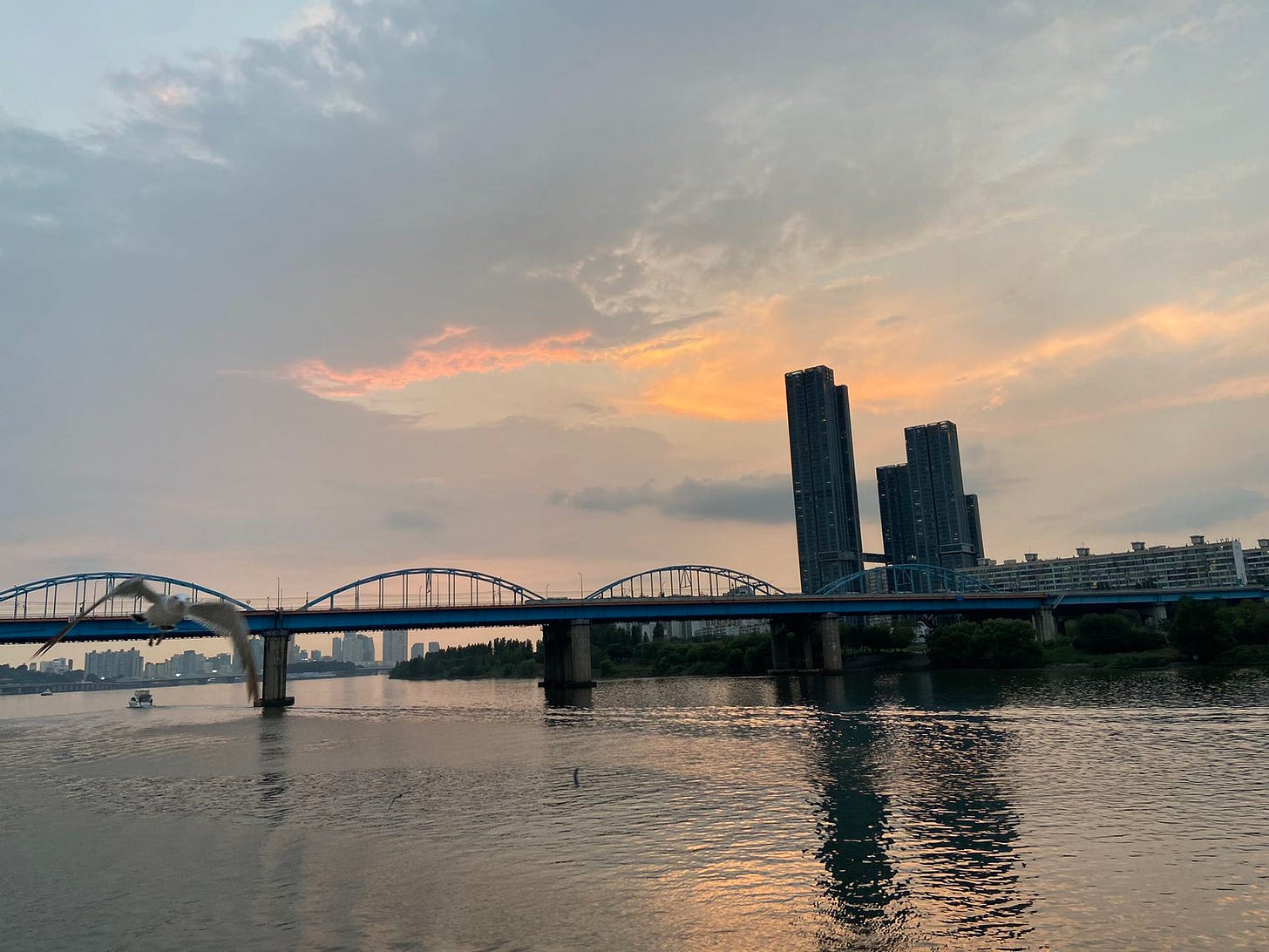 在汉江上喂了海鸥