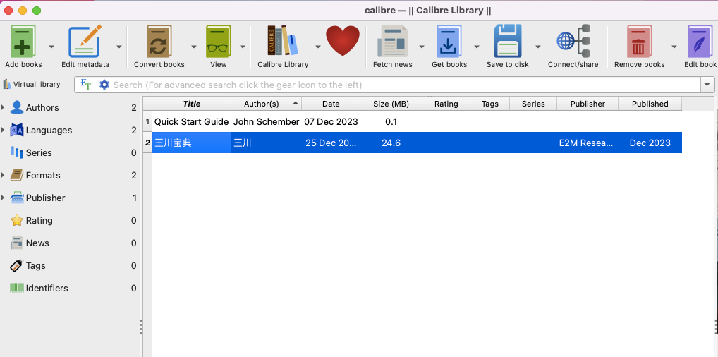 选中文件按“Edit Metadata”可以添加作者和书的封面。书的封面可以用Canva制作,这里就不赘述。