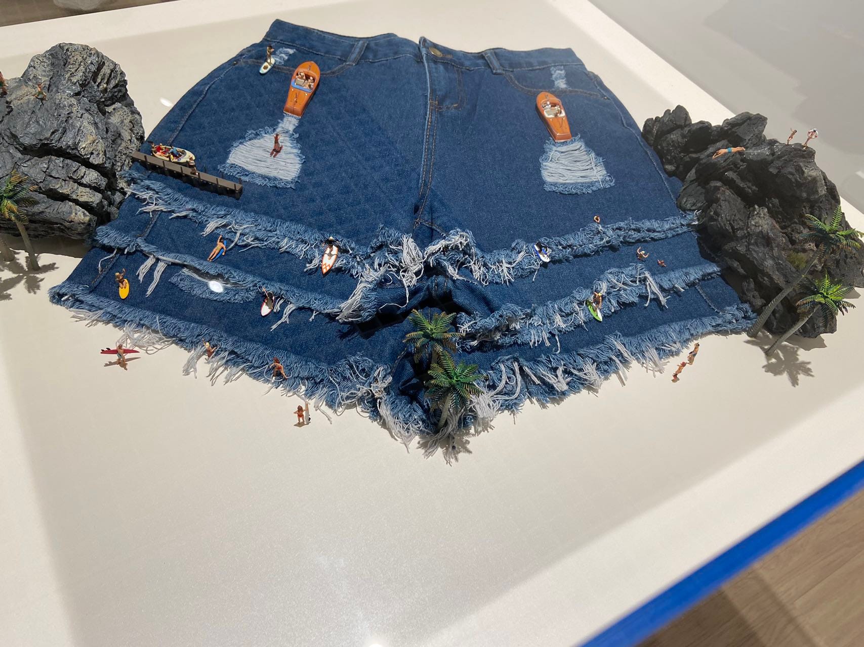 除了最直观地看到展品,因为朋友会韩语和日语,还给我讲了作品的一些谐音梗。用牛仔裤制成的海岸线既是waist coast又是west coast。